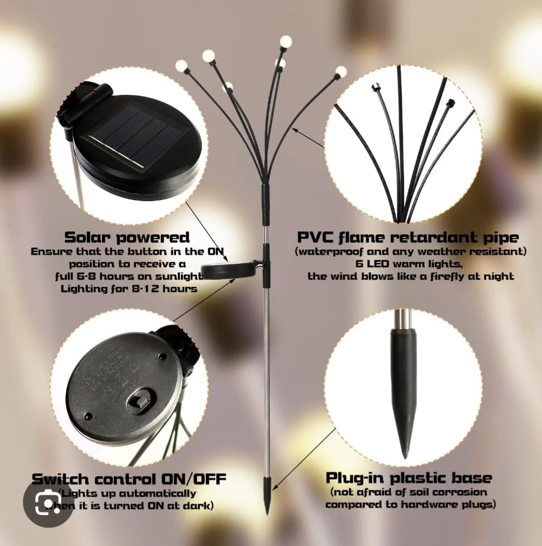 Firefly Solar LED Lights। এই আলোগুলো বাতাসে জোনাকির মতো দুলতে থাকে, যা আপনার আউটডোর বা বাগানকে দেবে এক মায়াবী রূপ।