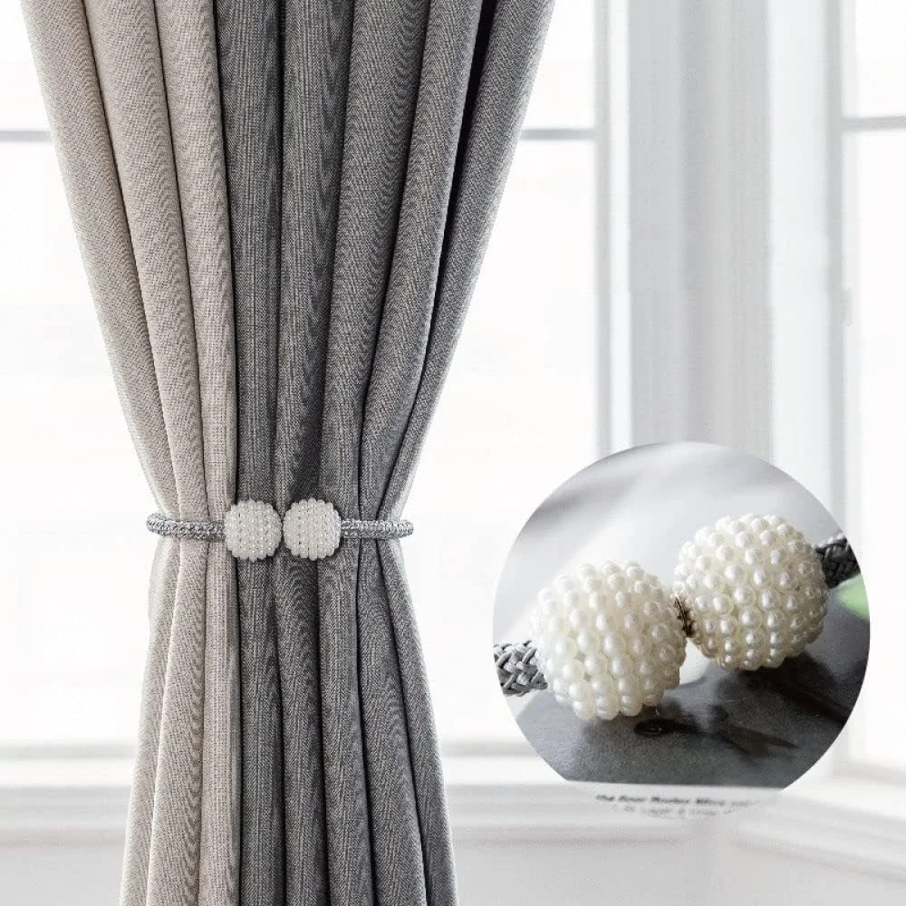 Silver । Magnetic Curtain Tieback with Big Pearl Ball (1 Pair) । CN-28